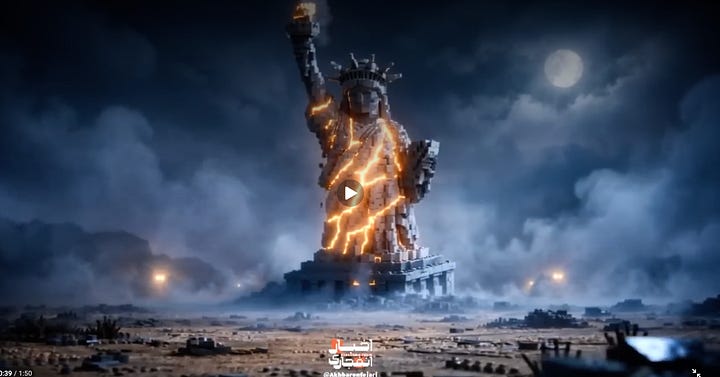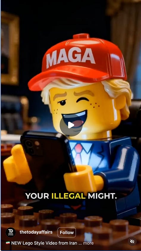 But, seen in opposition to the never-ending videos being released by Explosive Media, an anonymous group that’s been cagey about its relationship to the Iranian government, Iran is positioned globally as the source for truth about the conflict. In one recent video, the hip-hop track points out that the US is censoring news for its citizens and working with big Tech to edit satellite imagery. Given that Trump has spent the last decade screaming about truth and freedom, Iran’s comments feel particularly pointed. As I mentioned previously, these videos are aimed at creating a wedge in the US and siphoning off more Americans from Trump’s camp. Positioning him as against freedom might get the least indoctrinated to wake up. (It’s worth noting these films are clearly propaganda as they have no mention of the media and web blackouts that are reportedly occurring in Iran.)